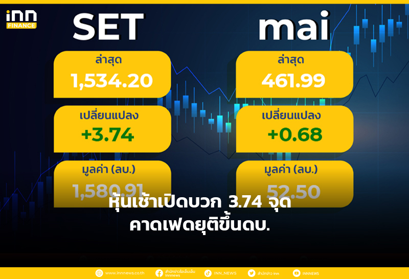 ตลาดหุ้นไทยเช้านี้เปิดบวก 3.74 จุด ได้แรงหนุนจากราคาน้ำมันดิบพุ่ง คาดเฟดยุติขึ้นดอกเบี้ย