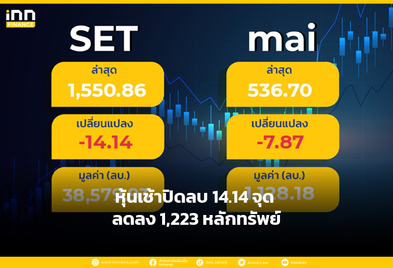 หุ้นเช้าปิดลบ 14.14 จุด ลดลง 1,223 หลักทรัพย์