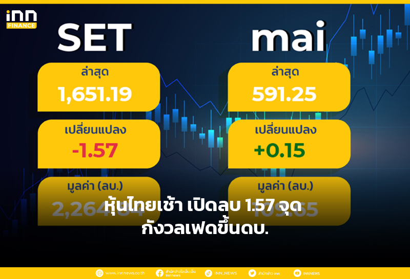 หุ้นไทยเช้า เปิดลบ 1.57 จุด กังวลเฟดขึ้นดบ.