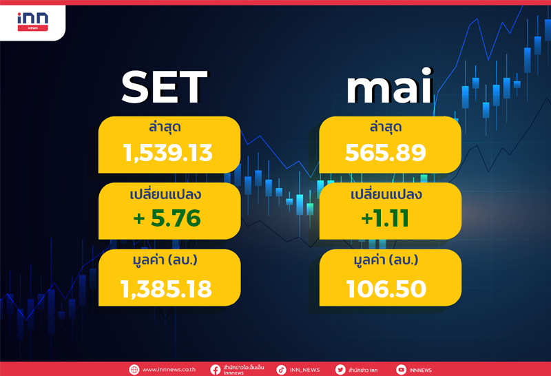 ตลาดหุ้นไทยเช้านี้เปิดบวก 5.76 จุด แตะ 1,539.13 จุด รีบาวด์ตามดาวโจนส์ กรอบวันนี้ 1,527-1,545 จุด