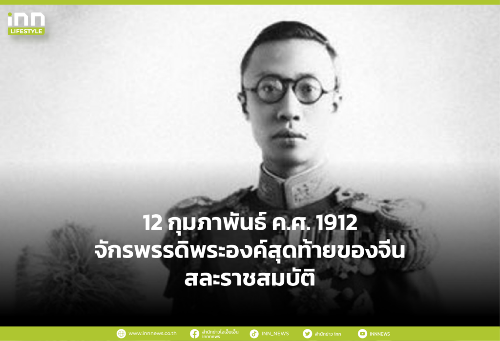 12 กุมภาพันธ์ ค.ศ. 1912 จักรพรรดิพระองค์สุดท้ายของจีนสละราชสมบัติ