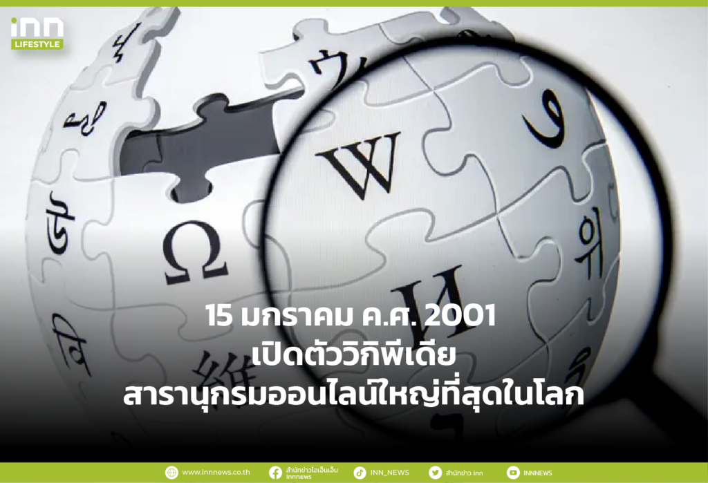 15 มกราคม ค.ศ. 2001 เปิดตัววิกิพีเดีย สารานุกรมออนไลน์ใหญ่ที่สุดในโลก