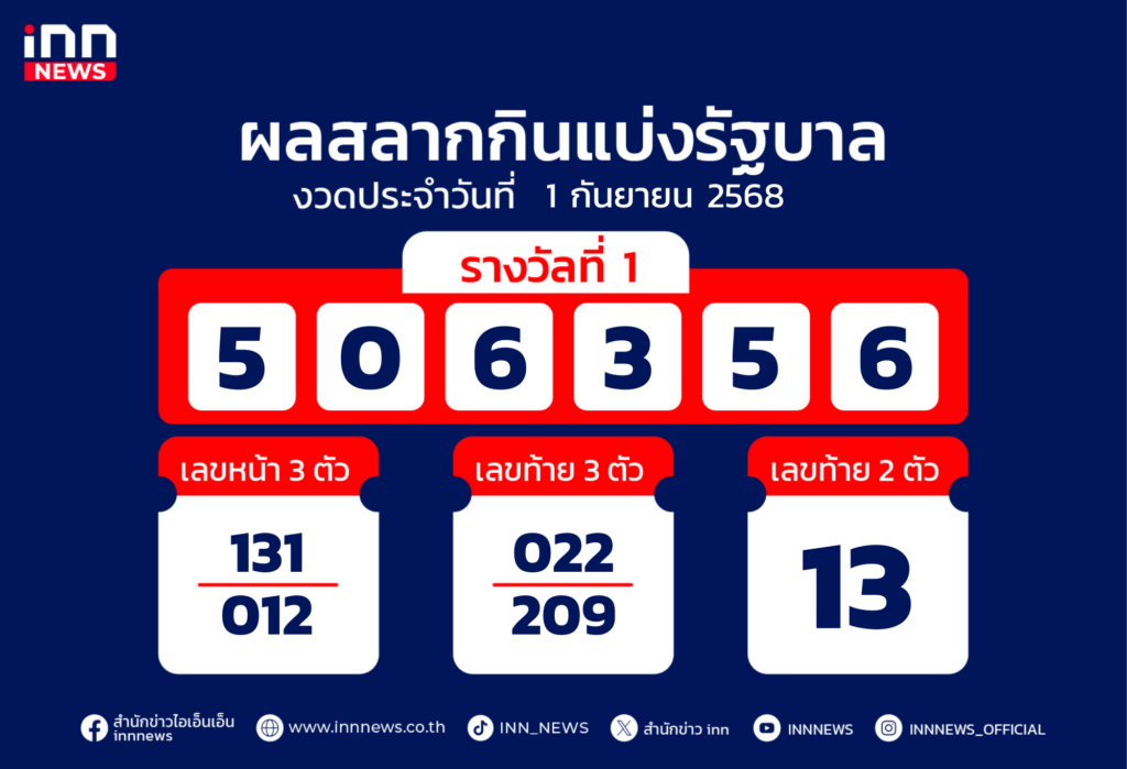 ตรวจหวยงวดประจำวันที่ 1 กันยายน 2568 สรุปเลขรางวัลงวดนี้