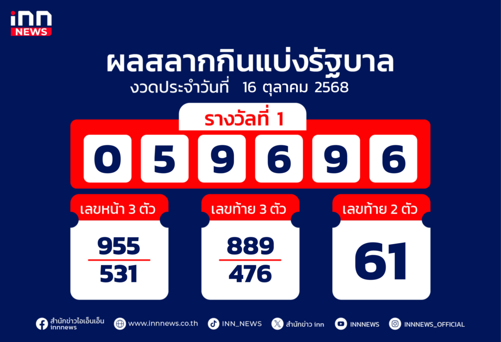 ตรวจหวยงวดประจำวันที่ 16 ตุลาคม 2568 สรุปเลขรางวัลงวดนี้