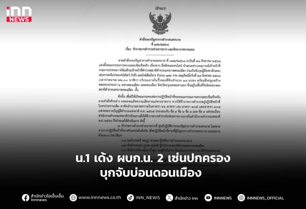 ผบช.น.ลงนามคำสั่ง ย้าย ผู้การ 2 ช่วยราชการ ศปก.นครบาล ให้ขาดจากตำแหน่ง ปมฝ่ายปกครองบุกจับบ่อนย่านดอนเมือง