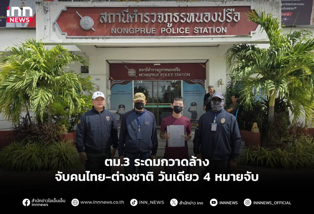 ตำรวจตรวจคนเข้าเมือง 3 ระดมหมายจับ กวาดล้างอาชญากรรม จับคนไทย-ต่างชาติวันเดียว 4 หมายจับ