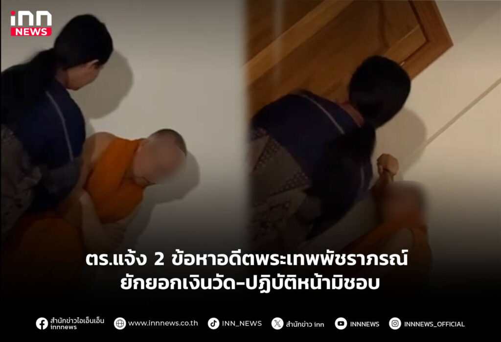 ตร.แจ้ง 2 ข้อหาอดีตพระเทพพัชราภรณ์ ยักยอกเงินวัด -ปฏิบัติหน้าที่โดยมิชอบ ให้การรับสารภาพปล่อยตัวชั่วคราว เผยคลิปทะเลาะกับสีกากอล์ฟ เหมือนแฟนทะเลาะกันด้วย