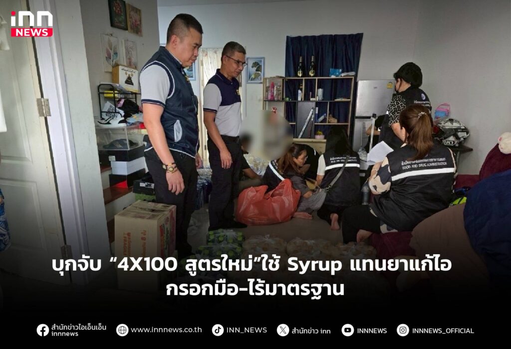 บุกจับ “4X100 สูตรใหม่”ใช้ Syrup แทนยาแก้ไอ กรอกมือ-ไร้มาตรฐาน