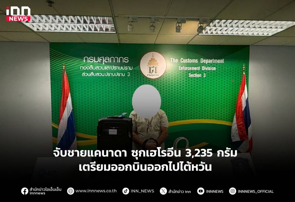 กรมศุลกากรจับกุม ชายสัญชาติแคนาดา ซุกเฮโรอีน เตรียมออกนอกประเทศ มูลค่ากว่า 1 ล้านบาท