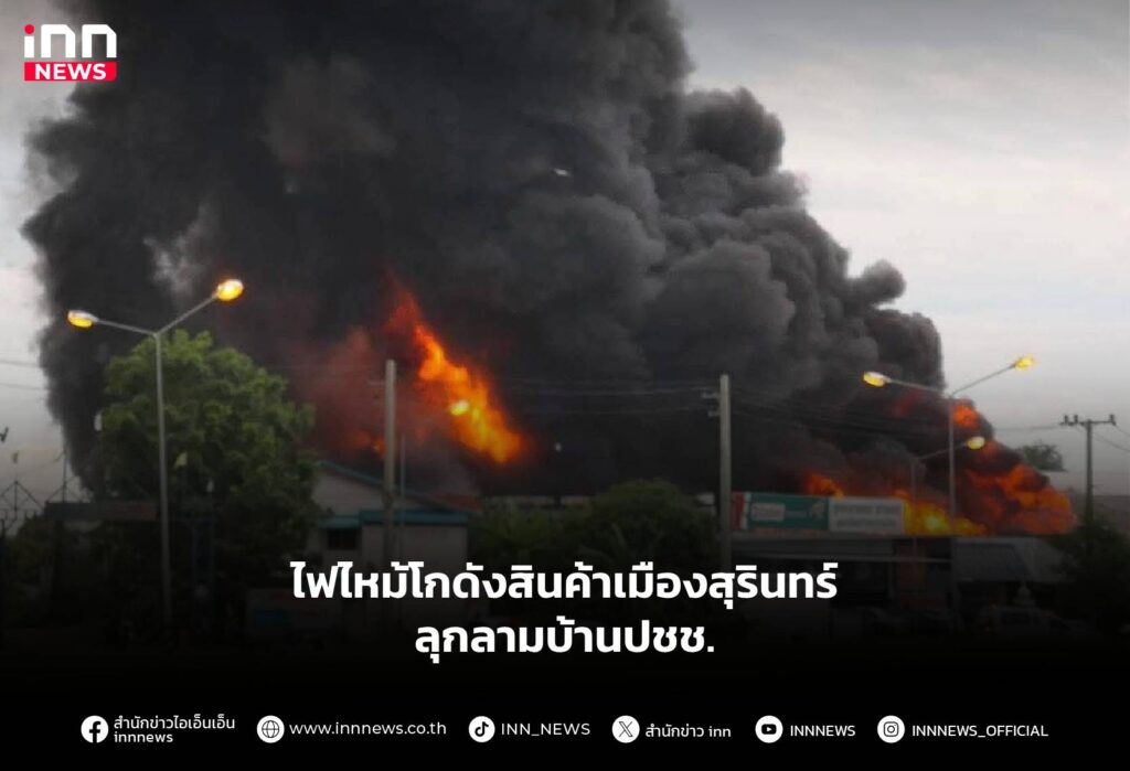 ด่วน! ไฟไหม้โกดังเก็บสินค้ากลางเมืองสุรินทร์ ลุกลามบ้านเรือนประชาชน เจ้าหน้าที่เร่งควบคุมเพลิงไม่ได้