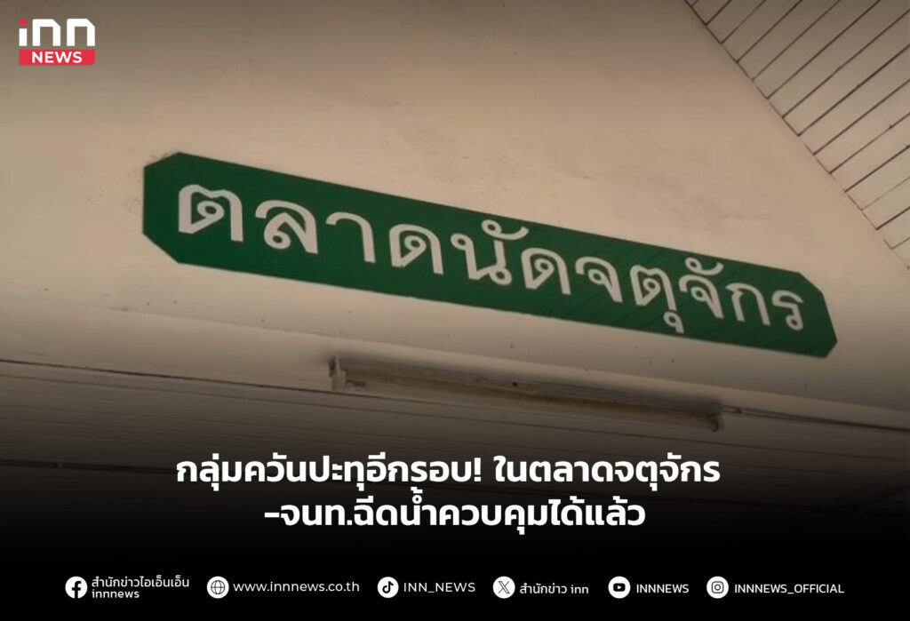 กลุ่มควันปะทุอีกรอบ! ในตลาดจตุจักร จนท.ฉีดน้ำควบคุมได้แล้ว