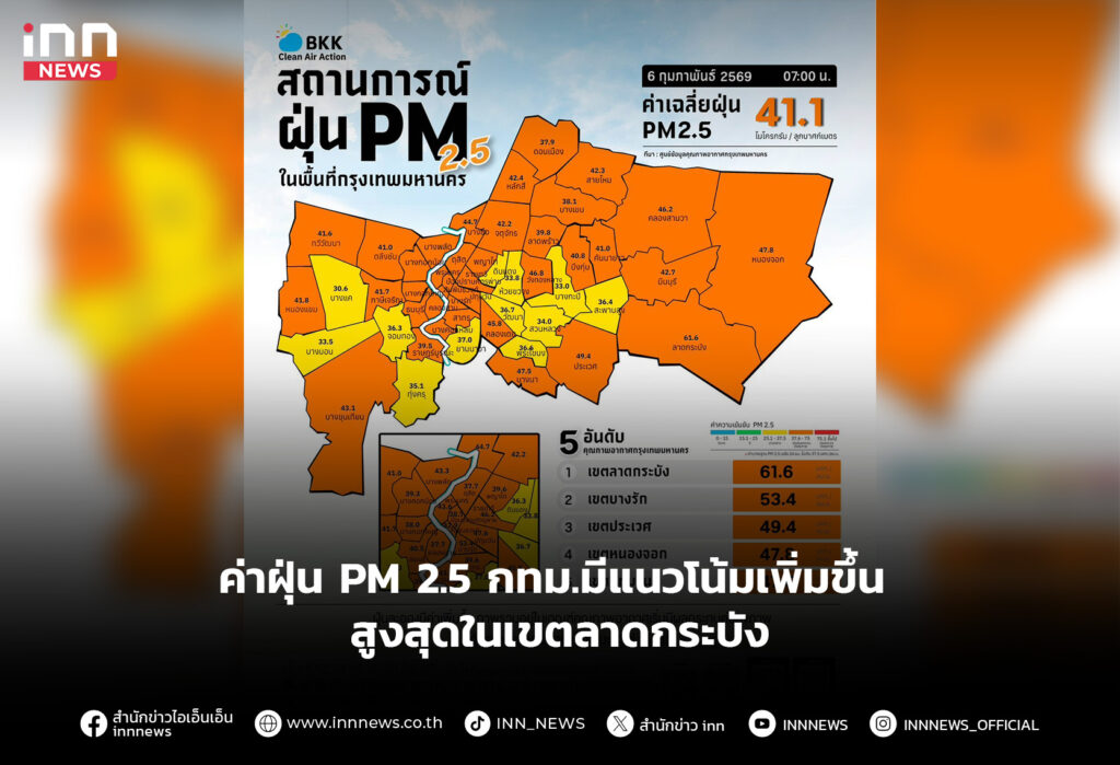ค่าฝุ่น PM 2.5 กทม.มีแนวโน้มเพิ่มขึ้น สูงสุดในเขตลาดกระบัง
