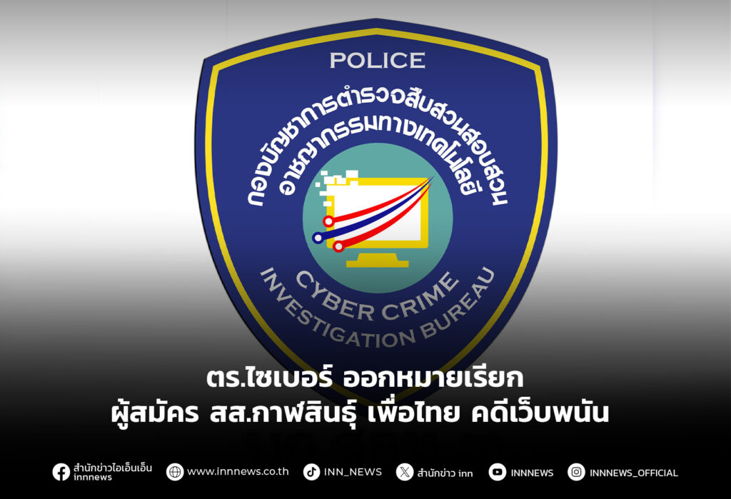 ตร.ไซเบอร์ ออกหมายเรียกผู้สมัคร สส.กาฬสินธุ์ เพื่อไทย คดีเว็บพนัน