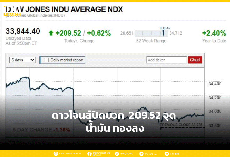 ดาวโจนส์ปิดบวก 209.52 จุด น้ำมัน ทองลง