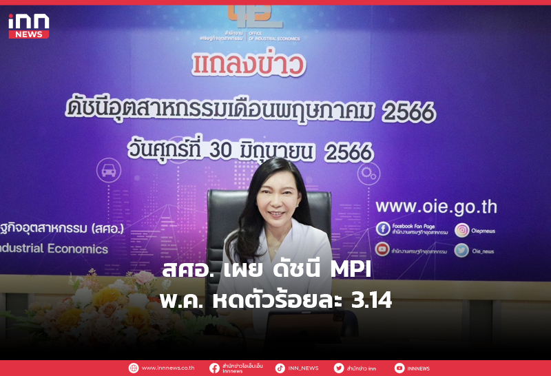 สศอ. เผย ดัชนี MPI พ.ค. หดตัวร้อยละ 3.14