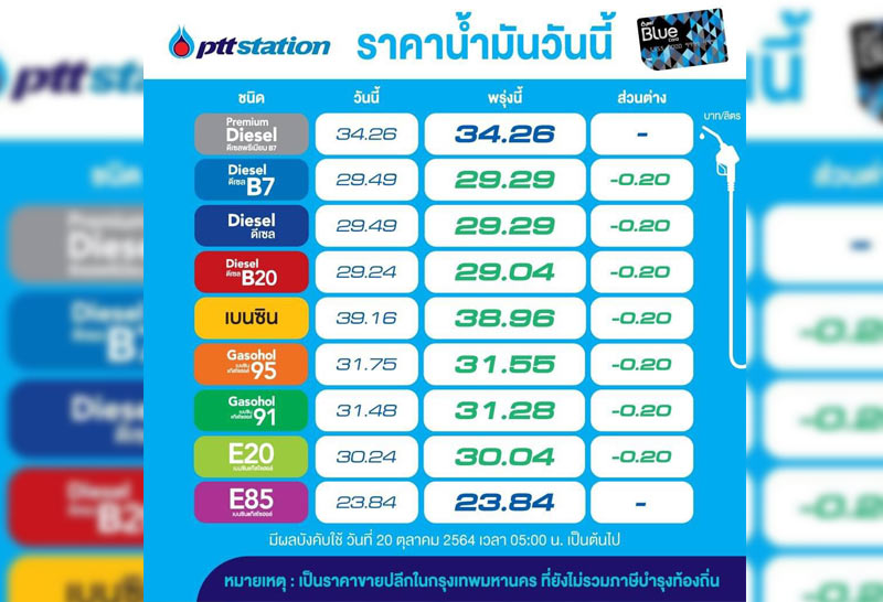 พรุ่งนี้น้ำมันลง20สต./ลิตร เว้น E85,B7พรีเมียม