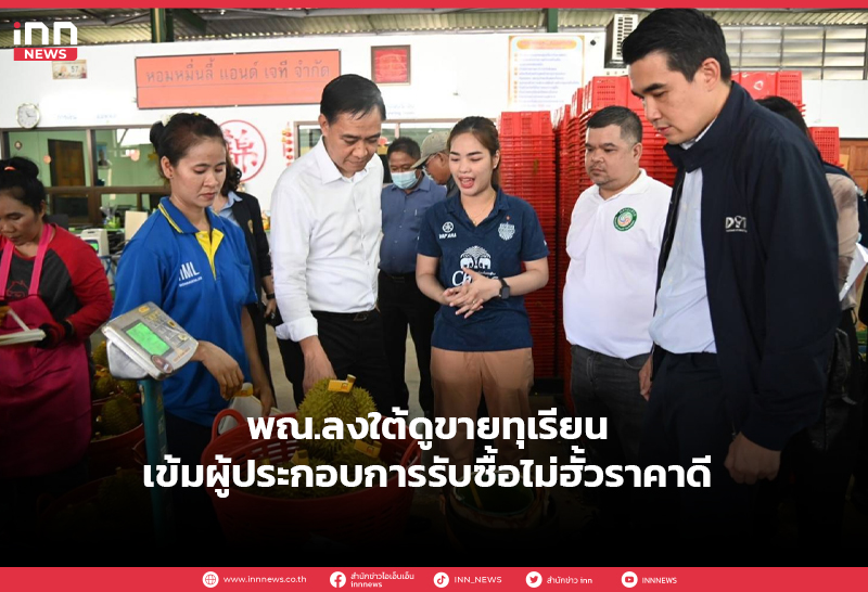 ปลัดพณ.ลงพื้นที่ชุมพร ดูสถานการณ์ทุเรียนภาคใต้ เผยผู้ประกอบการเข้ามารับซื้อไม่อั้นดันราคาอยู่ในเกณฑ์ดี เตรียมรับมือมังคุดรุ่น2