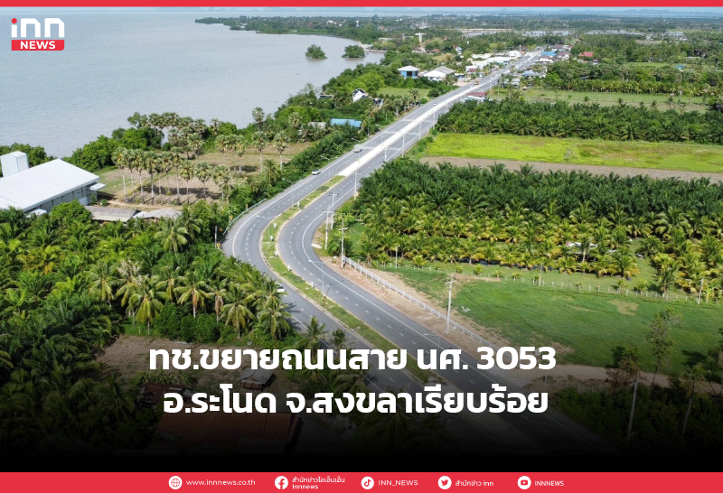 กรมทางหลวงชนบท ขยายถนนสาย นศ.3053 อ.ระโนด จ.สงขลา กว่า 6 กิโลเมตร เสร็จสมบูรณ์ รองรับปริมาณการจราจร ส่งเสริมเศรษฐกิจการขนส่งและการท่องเที่ยว