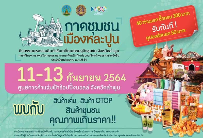 พาณิชย์จังหวัดลำพูน เดินหน้าจัดงาน "กาดชุมชน เมืองหละปูน" ระหว่างวันที่ 11-13 กย.นี้ ที่ศูนย์การค้าแจ่มฟ้าช็อปปิ้งมอลล์ ช่วยผู้ประกอบการเพิ่มรายได้