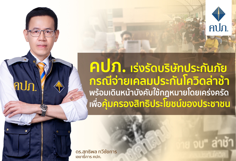 คปภ. เร่งรัดบริษัทประกันภัยกรณีจ่ายเคลมประกันโควิดล่าช้า พร้อมเดินหน้าบังคับใช้กฎหมาย