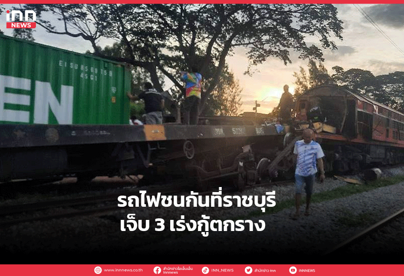 รถไฟชนกันที่ราชบุรี เจ็บ 3 เร่งกู้ตกราง