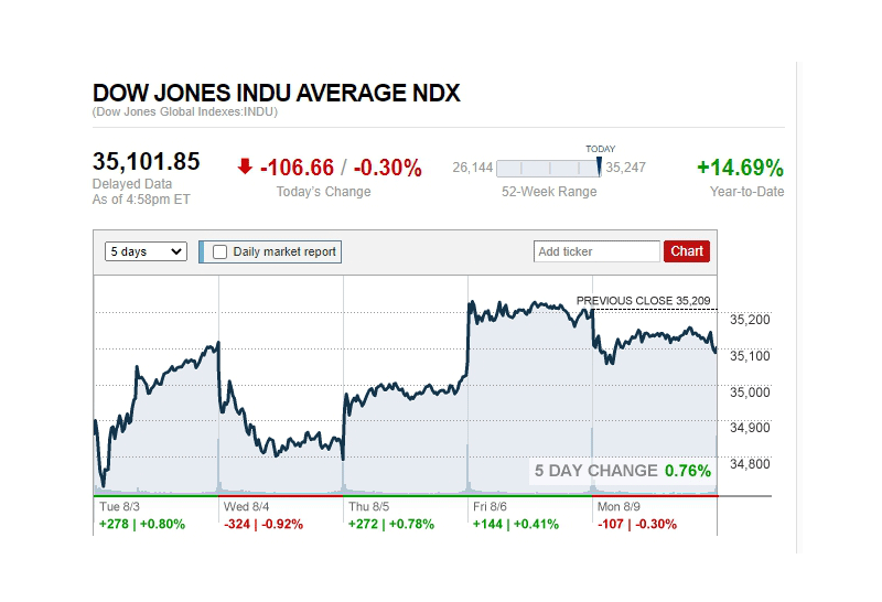 ดาวโจนส์ปิดลบ 106.66 จุด แตะ 35,101.85 จุด ขณะน้ำมัน WTI ลง 2.6% ทองร่วง 36.60 ดอลลาร์
