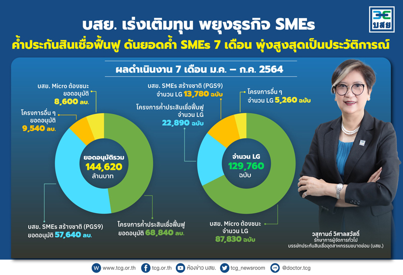 บสย. เร่งเติมทุน พยุงธุรกิจ เผยโครงการค้ำประกันสินเชื่อฟื้นฟู ช่วย SMEs ได้มาก ดันยอดค้ำ 7 เดือนพุ่งสูงสุดเป็นประวัติการณ์ 144,620 ล้านบาท