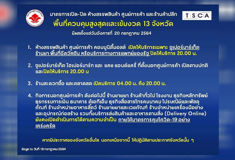 สมาคมผู้ค้าปลีกไทย ประกาศปรับการให้บริการ ในพื้นที่ 13 จังหวัด มีผลพรุ่งนี้
