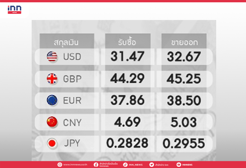 อัตราแลกเปลี่ยนเงินตราต่างประเทศของธนาคารกสิกรไทย เวลา 08.00 น. ดอลลาร์สหรัฐ รับซื้อ 31.47 บาท ขาย 32.67 บาท