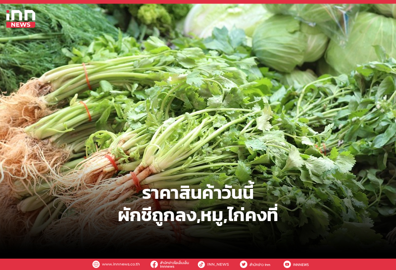 ราคาสินค้าวันนี้ผักชีถูกลง,หมู,ไก่คงที่