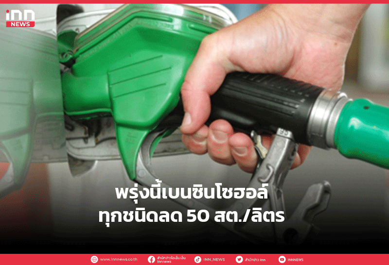 พรุ่งนี้เบนซินโซฮอล์ทุกชนิดลด 50 สต./ลิตร