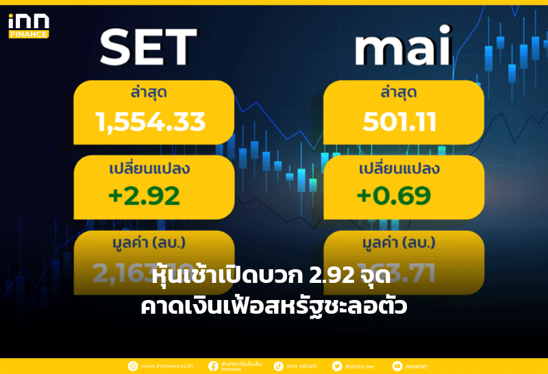 หุ้นเช้าเปิดบวก 2.92 จุด คาดเงินเฟ้อสหรัฐชะลอตัว