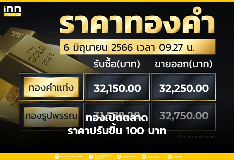 ทองเปิดตลาด ราคาปรับขึ้น 100 บาท