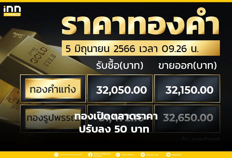 ทองเปิดตลาดราคาปรับลง 50 บาท