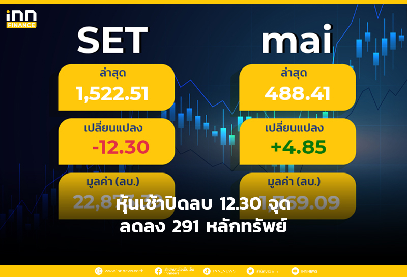 หุ้นเช้าปิดลบ 12.30 จุด ลดลง 291 หลักทรัพย์