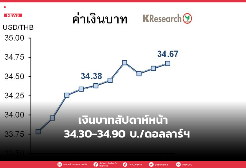 เงินบาทสัปดาห์หน้า 34.30-34.90 บ./ดอลลาร์ฯ