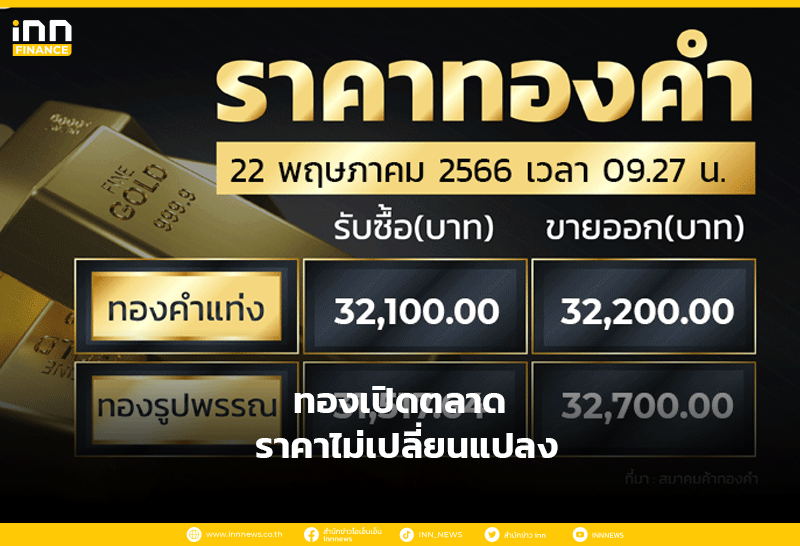 ทองเปิดตลาด ราคาไม่เปลี่ยนแปลง