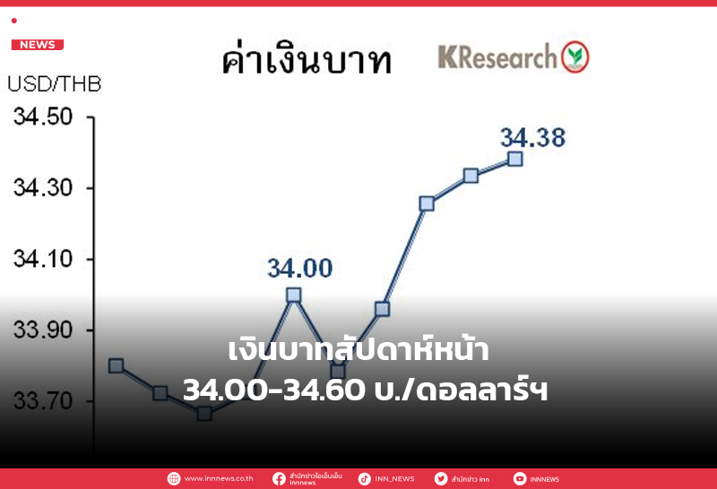 เงินบาทสัปดาห์หน้า 34.00-34.60 บ./ดอลลาร์ฯ