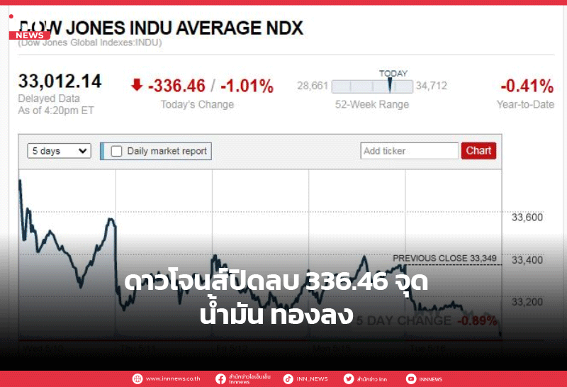 ดาวโจนส์ปิดลบ 336.46 จุด น้ำมัน ทองลง