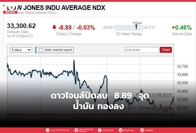 ดาวโจนส์ปิดลบ 8.89 จุด น้ำมัน ทองลง