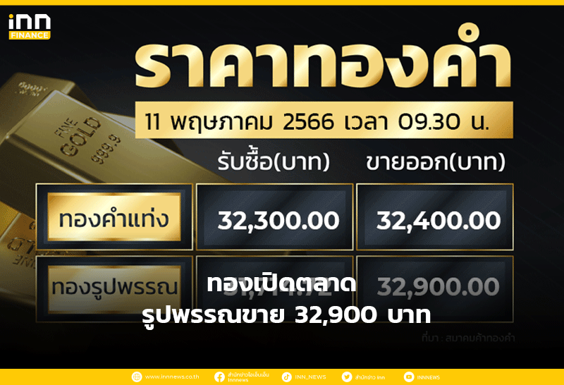 ทองเปิดตลาด รูปพรรณขาย 32,900 บาท