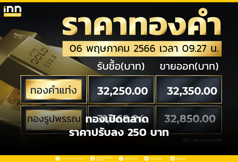 ทองเปิดตลาด ราคาปรับลง 250 บาท