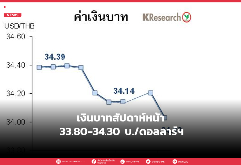 เงินบาทสัปดาห์หน้า 33.80-34.30 บ./ดอลลาร์ฯ