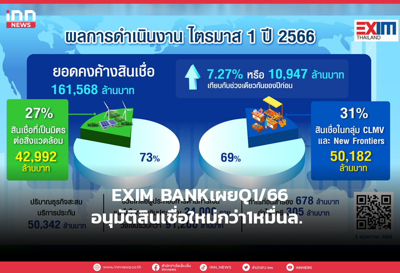 EXIM BANKเผยQ1/66อนุมัติสินเชื่อใหม่กว่า1หมื่นล.
