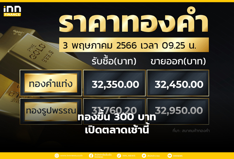 ทองขึ้น 300 บาท เปิดตลาดเช้านี้