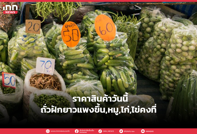 ราคาสินค้าวันนี้ถั่วฝักยาวแพงขึ้น,หมู,ไก่,ไข่คงที่