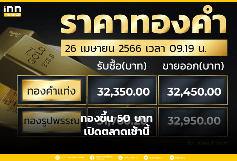 สมาคมค้าทองคำ ประกาศราคาซื้อขายทองครั้งที่ 1 เมื่อเวลา 09.19 น. ราคาปรับขึ้น 50 บาท จากราคาวานนี้