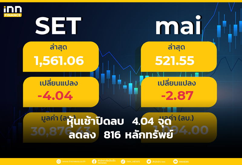หุ้นเช้าปิดลบ 4.04 จุด ลดลง 816 หลักทรัพย์