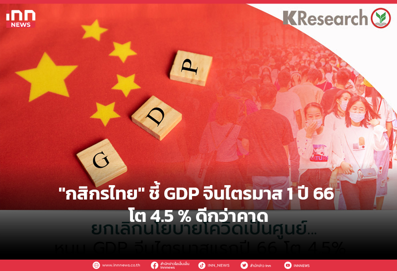 “กสิกรไทย” ชี้ GDP จีนไตรมาส 1 ปี 66 โต 4.5 % ดีกว่าคาด