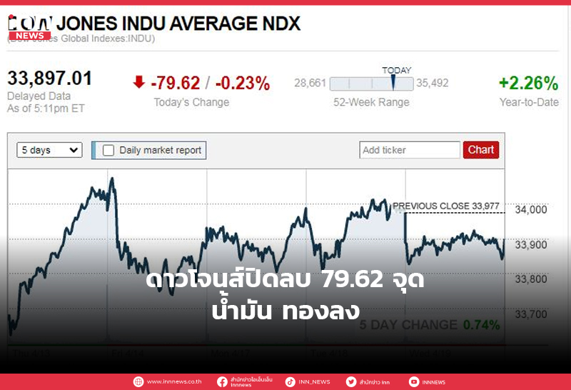 ดาวโจนส์ปิดลบ 79.62 จุด น้ำมัน ทองลง
